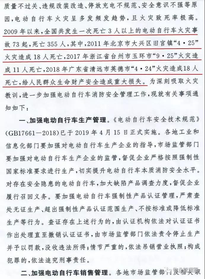 为有效遏制电动车火灾多发势头,国家多次出重拳、下重手进行综合治理。2019年9月24日,应急管理部、工业和信息化部、公安部、住房和城乡建设部、市场监管总局联合发文: