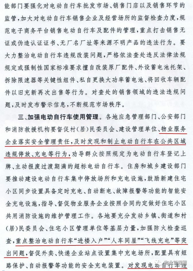 物业企业落实安全管理责任,及时发现和制止电动车在公共区域违规停放、充电等行为