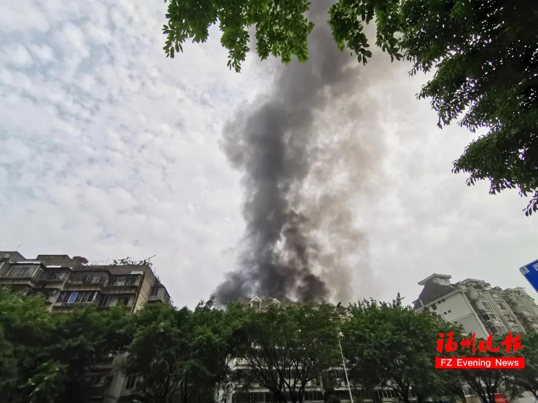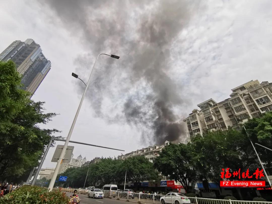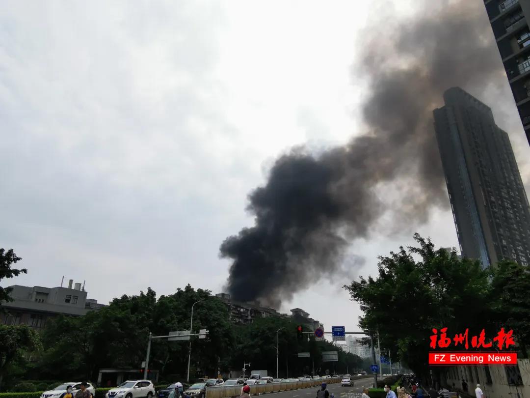 近日早高峰,福州乌山西路附近有浓烟持续冒出, 现场消防车鸣笛,呼啸而过