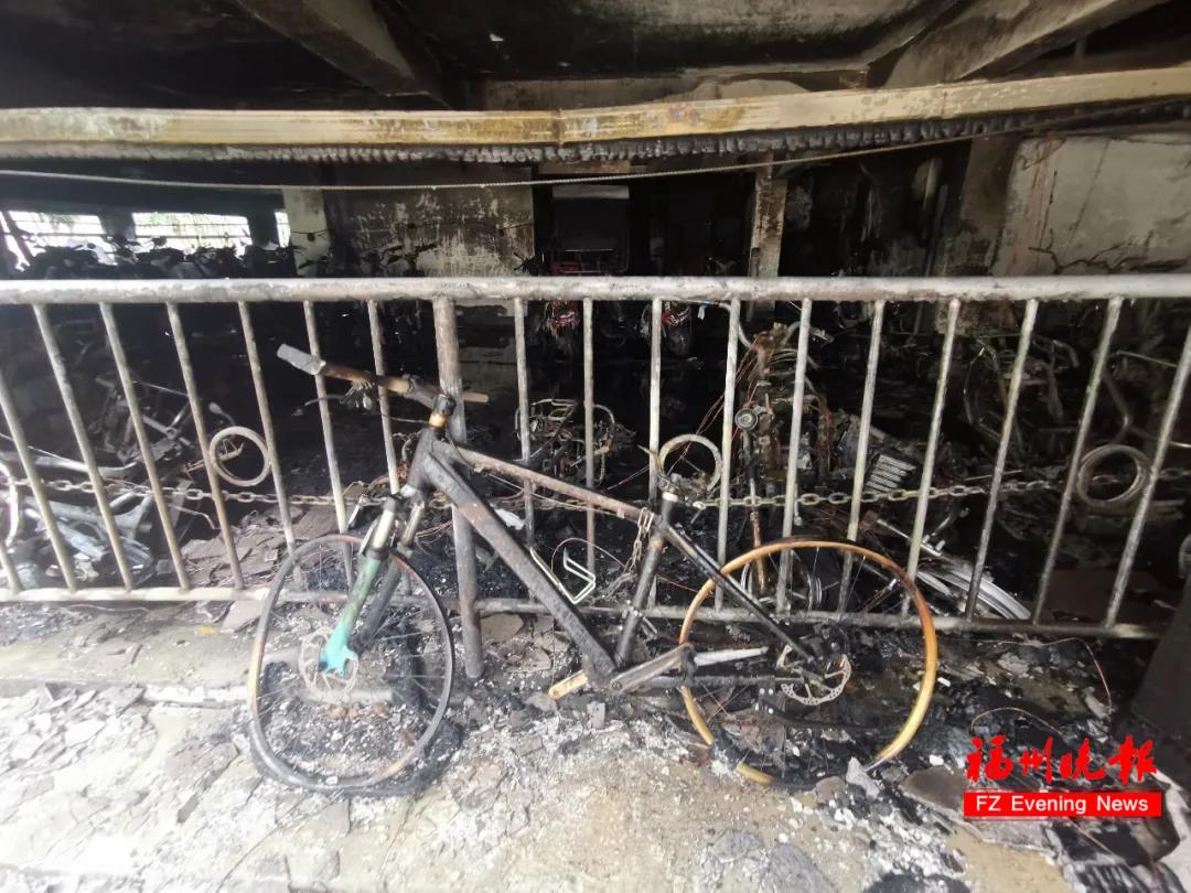 据了解,火灾没有造成人员伤亡。架空层约一百多辆,电动自行车、自行车被波及存放架空层的杂物也面目全非