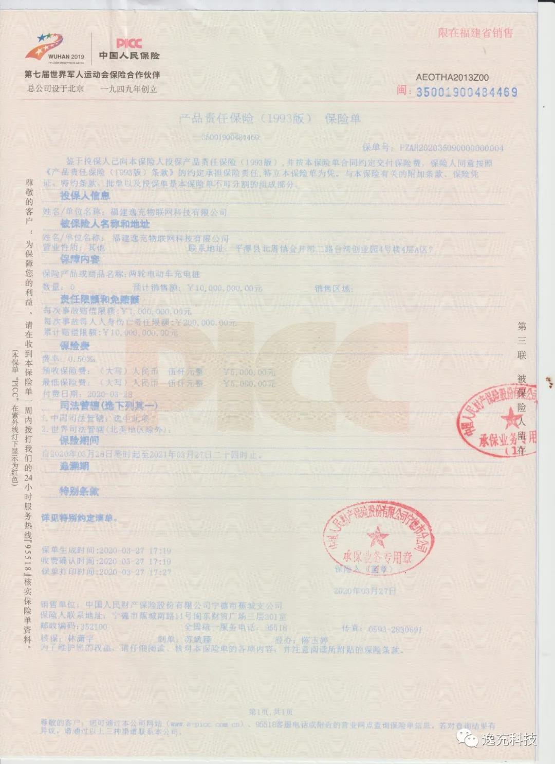 逸充所有充电桩设备均由中国人民保险承保。
